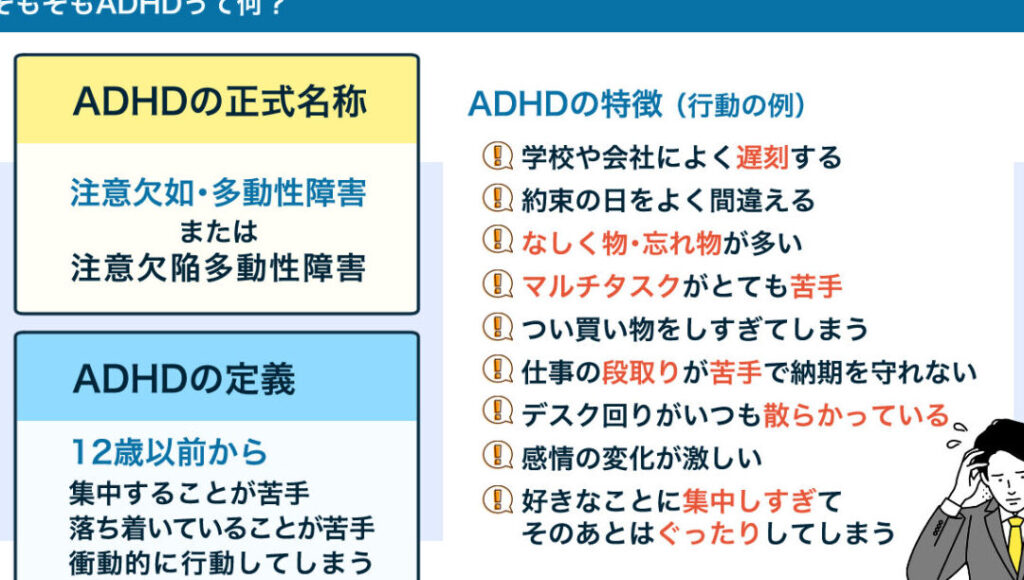 ADHDを理解するためには、具体的な症状やその影響を知ることが重要です。以下のポイントを踏まえて、ADHDの特徴と対応策を見ていきます。