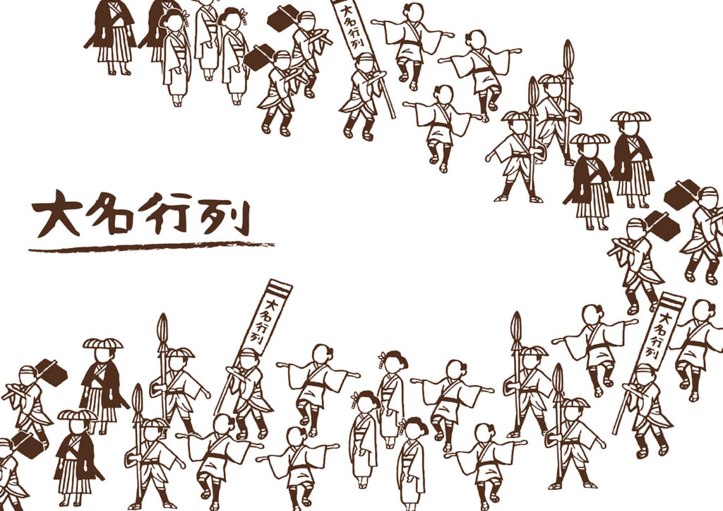 参勤交代の期間中、大名はその家族や家臣を連れて江戸に滞在しました。家族や家臣の同行は、地域の人々への影響力を緩和する役割も果たしました。また、移動の際には多くの人が行列を作り、大名の権威を示すことが求められました。