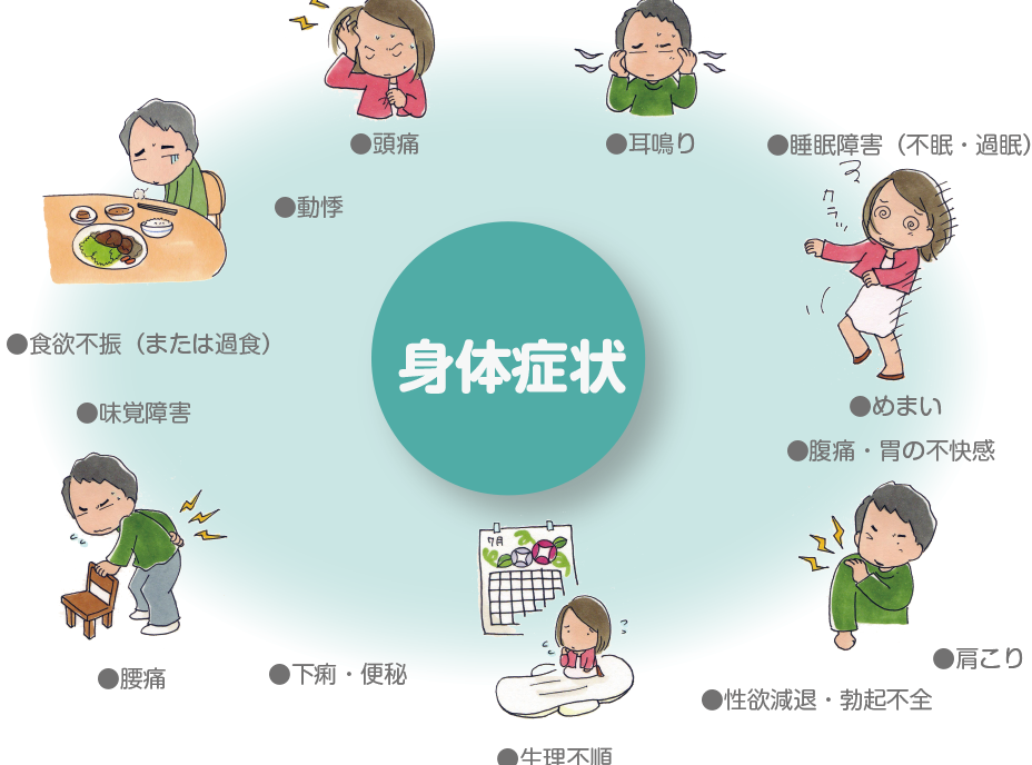 - 身体的症状:疲労感、睡眠障害、食欲の変化。