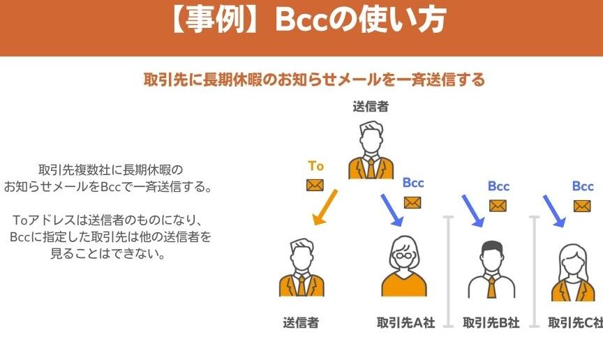- 社内連絡: 社員間での情報共有時に、全員のアドレスを隠すことで、重要な情報が外部に漏れないようにします。