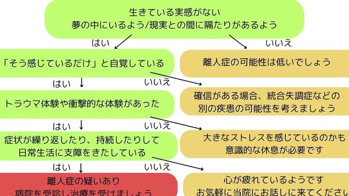 - 慢性的な離人症: 長期間続き、精神的な疾患が関与することが多い。