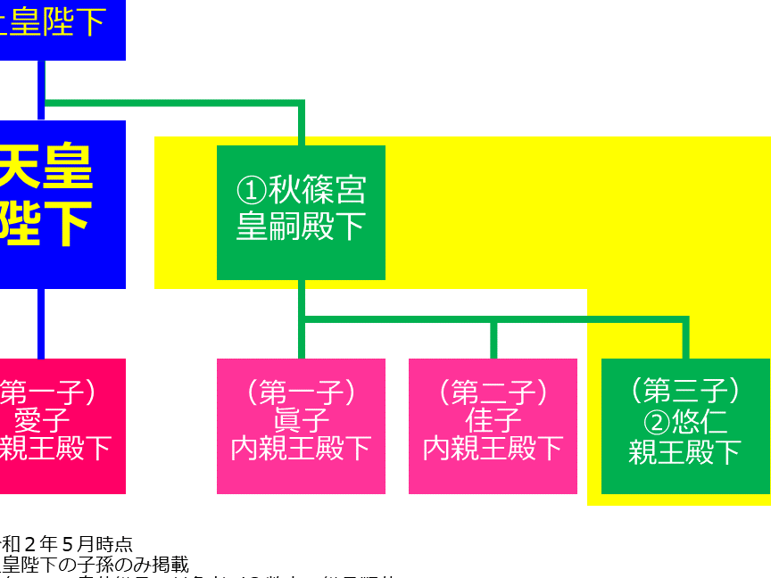 - 天皇の直系卑属:現在の天皇の子供たちや孫たち。