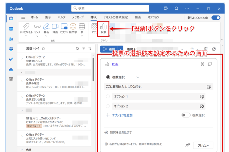 Outlookの投票ボタンの主な機能は、チームメンバーからの意見を迅速に集約することです。機能には以下があります。