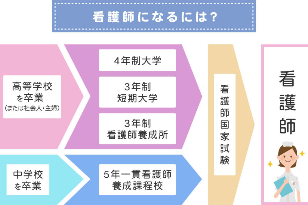 - 高等学校卒業: 看護専門学校または大学進学のための基礎です。