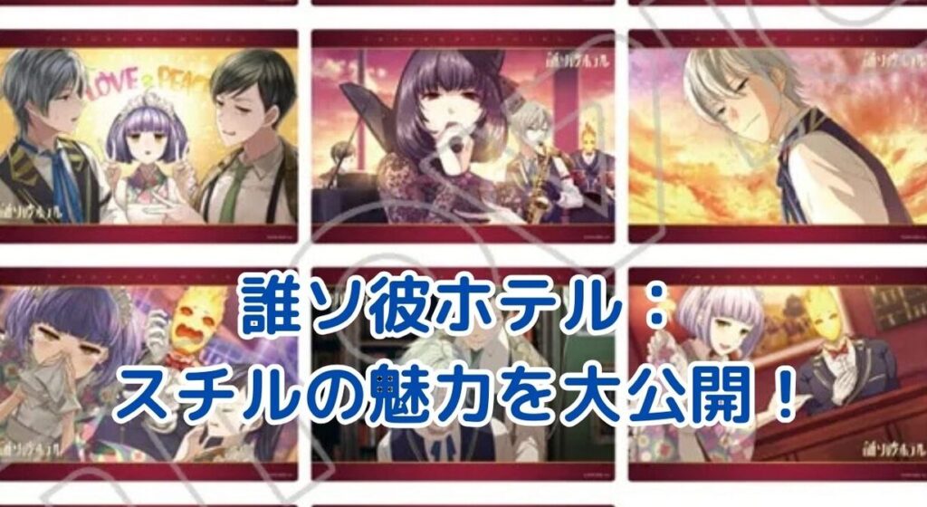 「誰ソ彼ホテル スチル」は、インタラクティブな選択を通じて物語が進行するビジュアルノベルです。プレイヤーはホテルのフロント担当として、訪れるキャラクターたちとの関係を築きながら、ストーリーを体験します。
