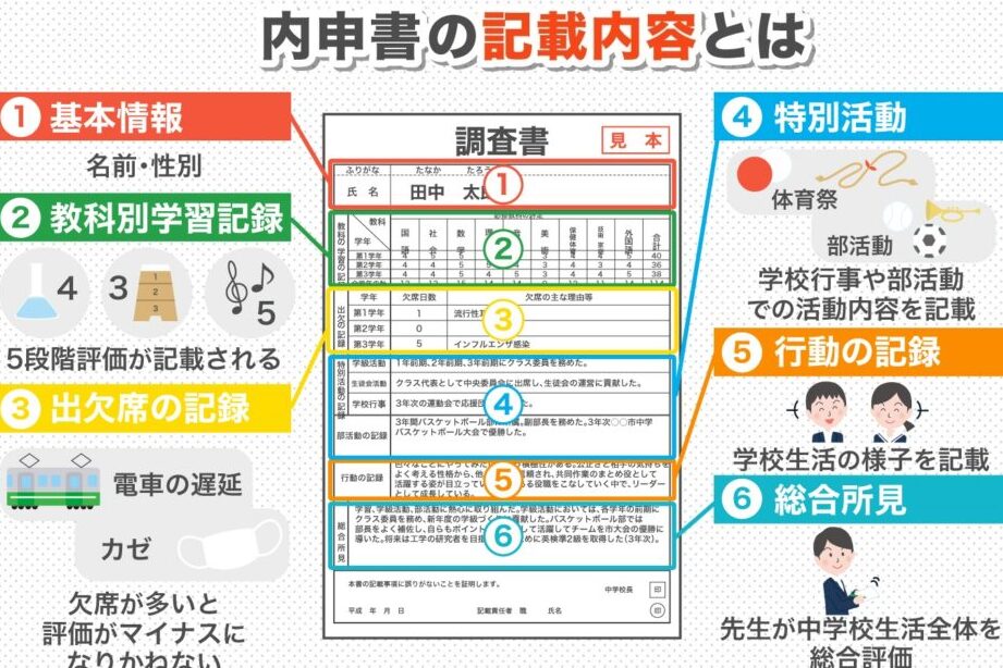 - 成績証明: 調査書には過去の成績が記録されており、学力を直接証明します。これにより、受験校は学生の学習能力を正確に把握できます。