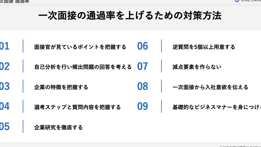 一次面接では、以下の点が重要になります: