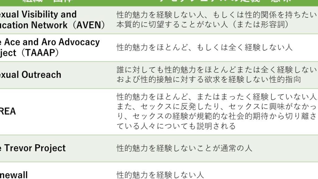 - AVEN (Asexual Visibility and Education Network): アセクシャリティについての包括的な情報を提供。