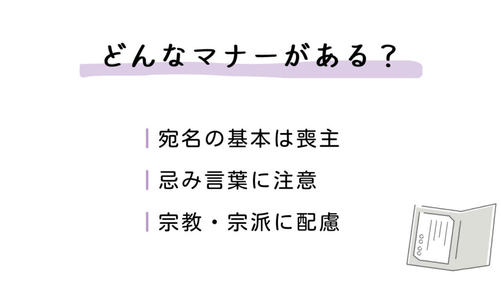 宛名を書く際にはいくつかの重要な注意点があります。これらの点を意識することで、適切な宛名を書き、故人や遺族に対する敬意を示せます。