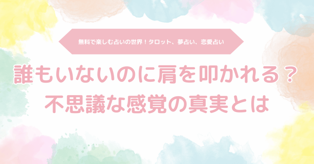 私たちの周りには、時々不思議な体験があるものです。特に「肩を叩かれる 誰もいない」という現象は、多くの人にとって心に残る出来事でしょう。誰もいないはずの場所で感じるその触れ合いは、一体何を意味するのでしょうか?私たちはこの神秘的な体験について深く掘り下げてみたいと思います。