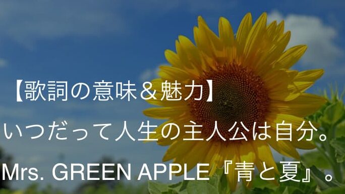 Mrs. GREEN APPLEの「青と夏」は青春の複雑な感情を鮮やかに表現した名曲です。私たちはこの曲が持つ魅力に心を奪われました。歌詞やメロディは聴く人々の心に響き、思い出と希望が交差する瞬間を提供してくれます。