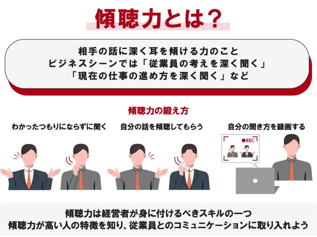 アクティブリスニングは、相手に対して関心を示し、理解を深める重要な技術です。具体的には以下のポイントがあります: