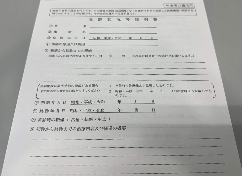 - 福祉制度の利用:公共の福祉制度を利用する際、受診状況等証明書の提出が求められます。