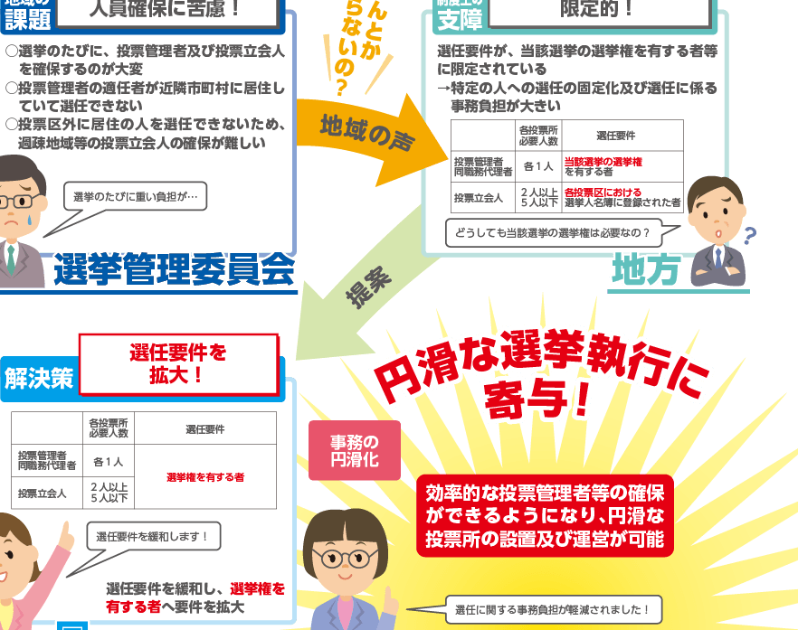 これにより、委員はそれぞれの地域の意見やニーズを反映した選挙運営を行います。