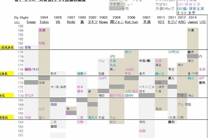 - 嵐: メンバーの平均身長は約173cm。特に大野智さんの165cmと松本潤さんの174cmが注目される。